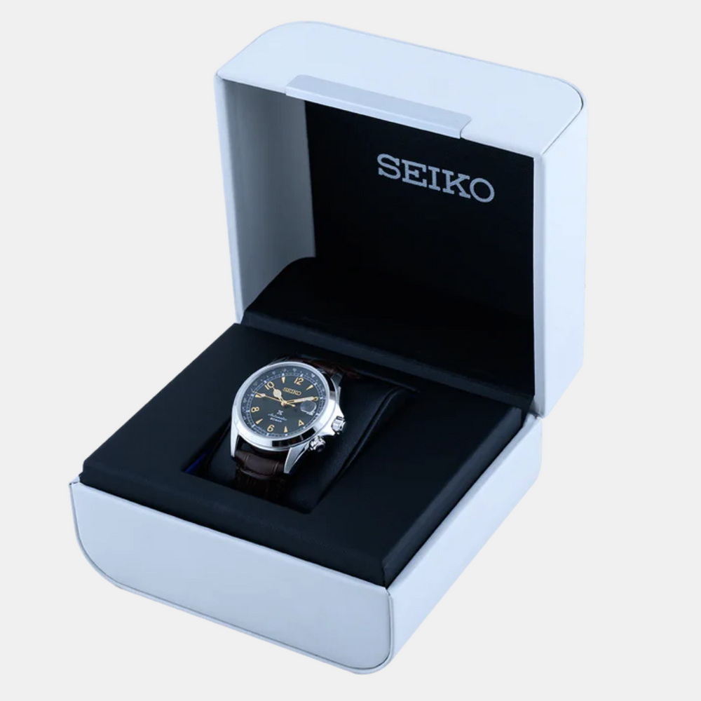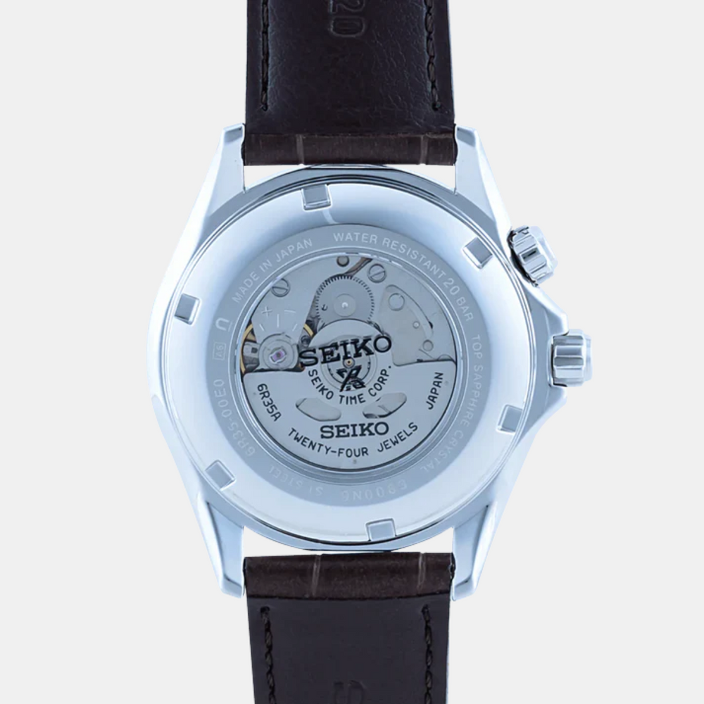 This automatic watch from Prospex has been designed for breathtaking adventures on land. Challenging every limit, this green-dial mechanical watch features a date display, LumiBrite hands and indices, and more. Add a stylish dimension to your look by wearing this men's analog watch from the collection by Seiko. The green round dial is protected by a mineral glass. It features a crown for time adjustment. The steel strap comes in a brown hue that further elevates the look of the timekeeper. Besides, it is completed with a buckle clasp to ensure a secure fit on the wrist.