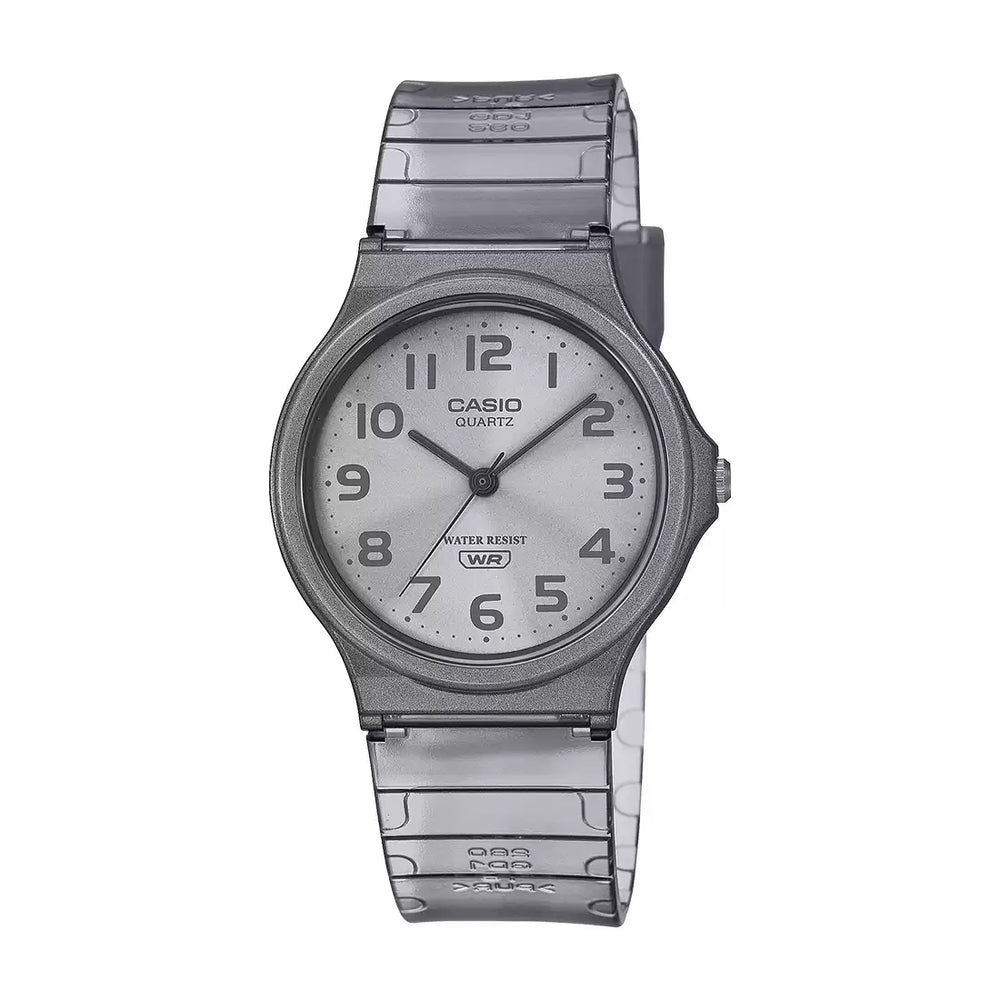 The best-selling MQ-24 is back in colorful translucent designs! These watches feature a metallic case,sunburst-finish dial and band that come together in harmonized monochromatic color schemes. A simplEdesign with basic hour, minute and second hands, water resistance for daily use and a lightweight, comfortablefit for an easy, breezy timepiece.