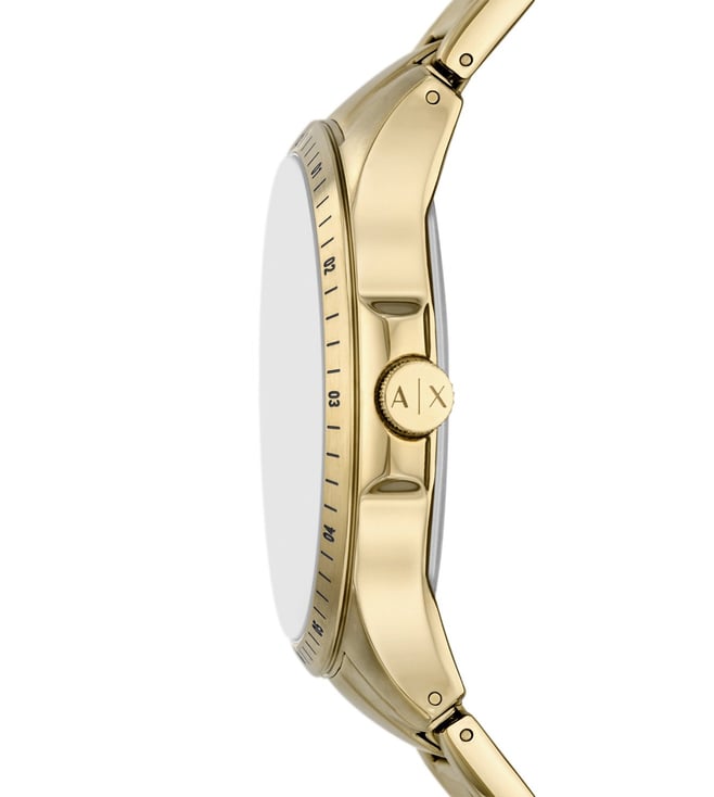 Armani Exchange's 46mm watch features a black matte dial, multifunction movement and gold-tone stainless steel bracelet.if you are looking for a refined look. Known for its distinctive pattern, this timepiece stands out. With a stunning design and charming looks, this is an exquisite wristwatch made for Every one.