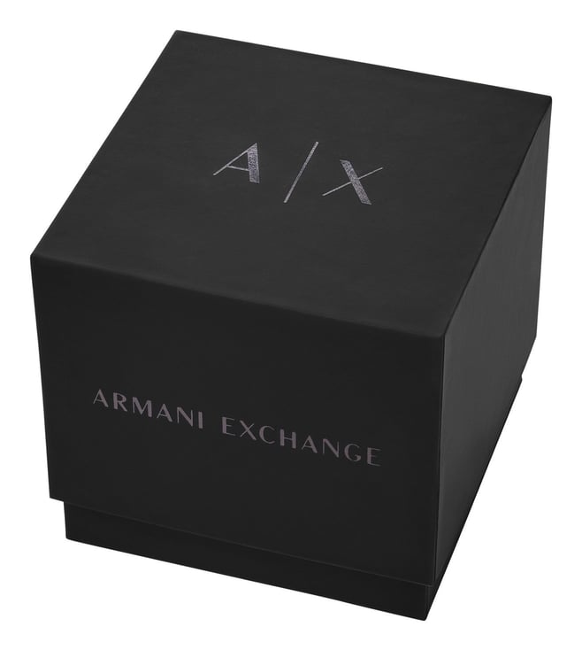 Armani Exchange's 36mm watch features a gold sunray dial, two-hand movement and black leather strap. Amaze everyone around you by wearing this women's analog watch from the collection by Armani Exchange. The gold round dial is protected by a mineral glass. It features a crown for time adjustment.