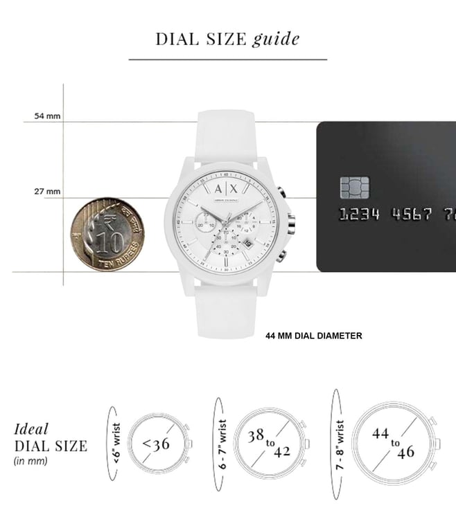 Designed to suit the preference of urban men this analog watch from Armani Exchange is sure to make a style statement. Secured by a mineral glass, the white round dial. It has a crown for time adjustment. The stainless steel strap flaunts a white hue that accentuates the look of the watch. Moreover, it is fitted with a buckle clasp to ensure a secure fit on the wrist.