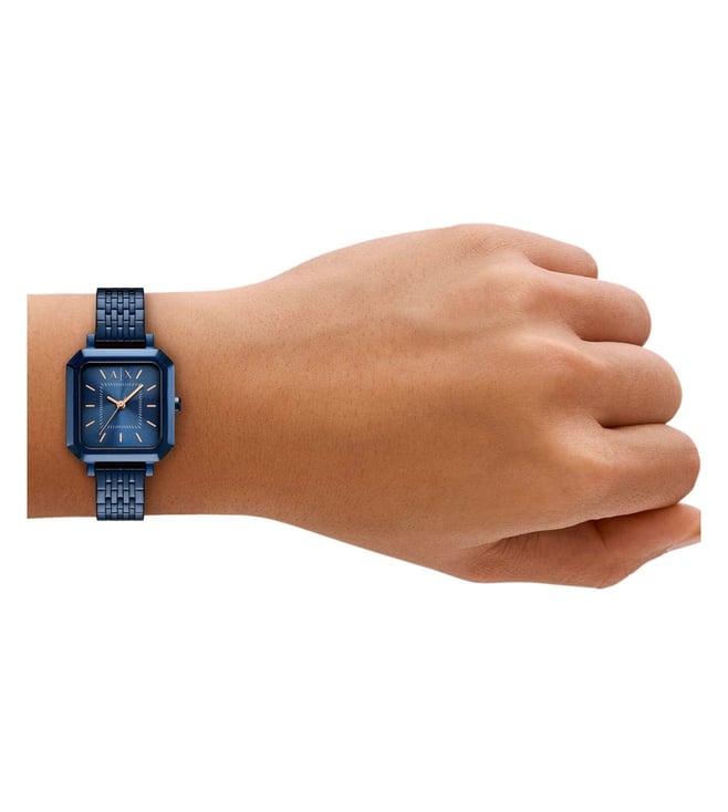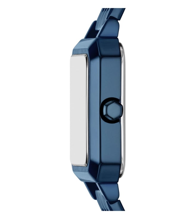 A sleek rectangle-shaped case meets deep blue stainless steel for a streamlined, modern profile. The sunray-finished dial catches light with subtle radiance, while the matching bracelet adds tonal consistency. Minimalist and precise, this three-hand quartz watch delivers understated refinement through clean lines and thoughtful design.