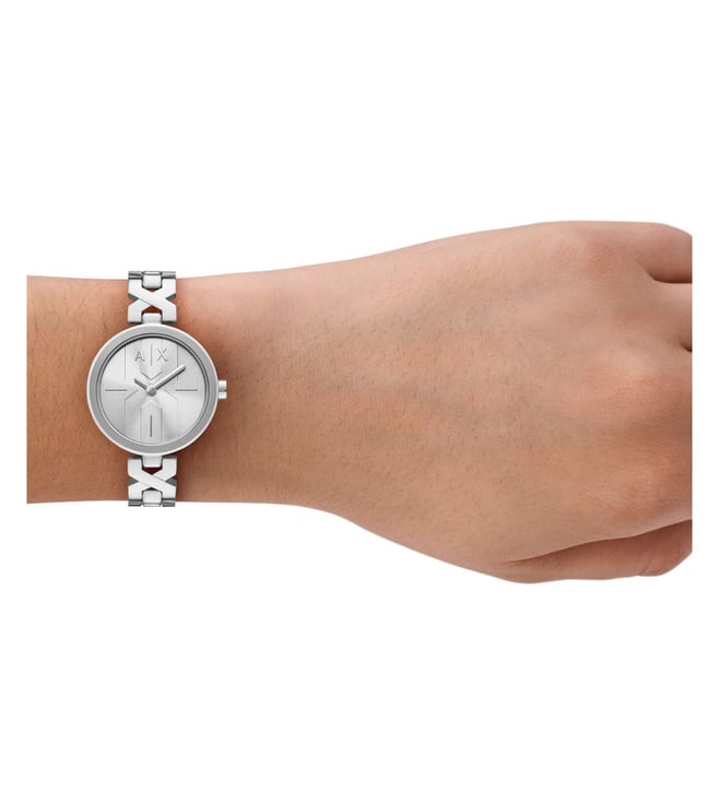 A polished jewellery inspired silver-tone bracelet pairs seamlessly with a sunray-finished dial, creating a sleek monochromatic look that feels effortlessly refined. The minimalist round case complements the streamlined design, while stainless steel construction ensures a modern edge and lasting quality. Designed for versatility, this piece transitions effortlessly between day and evening wear.