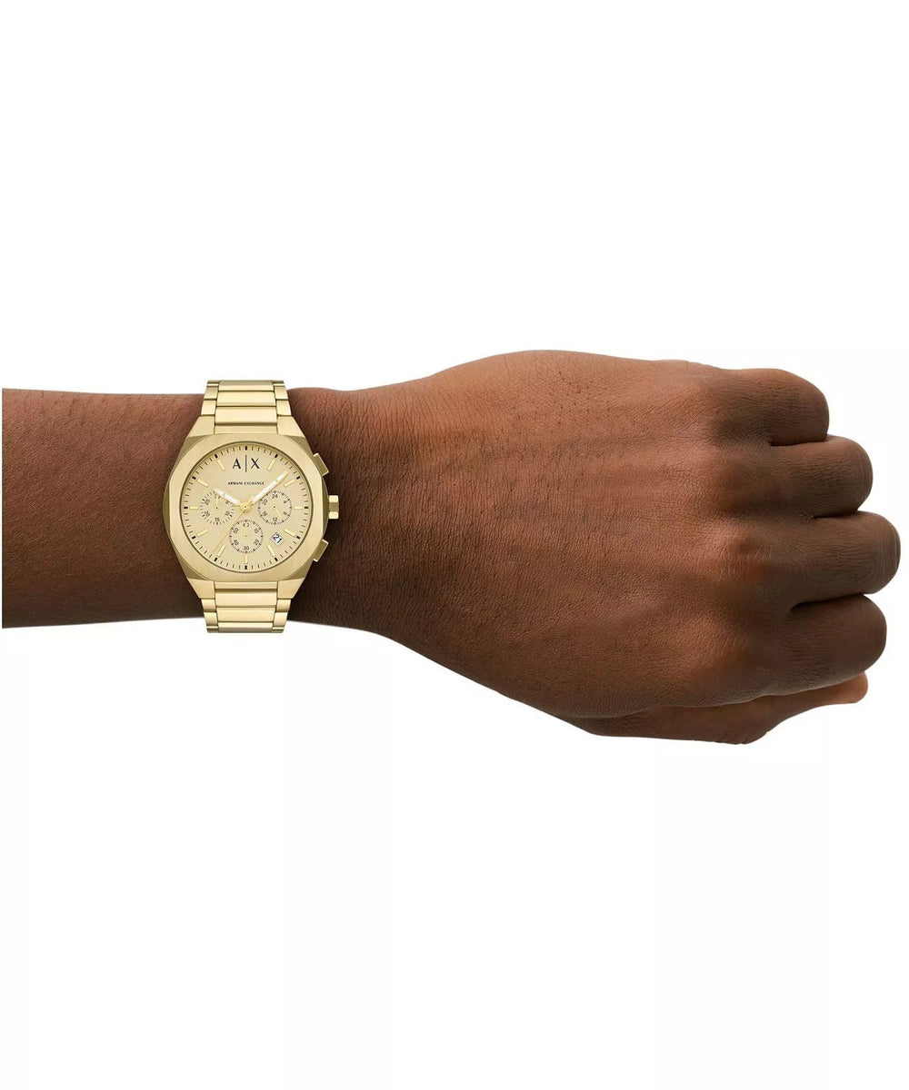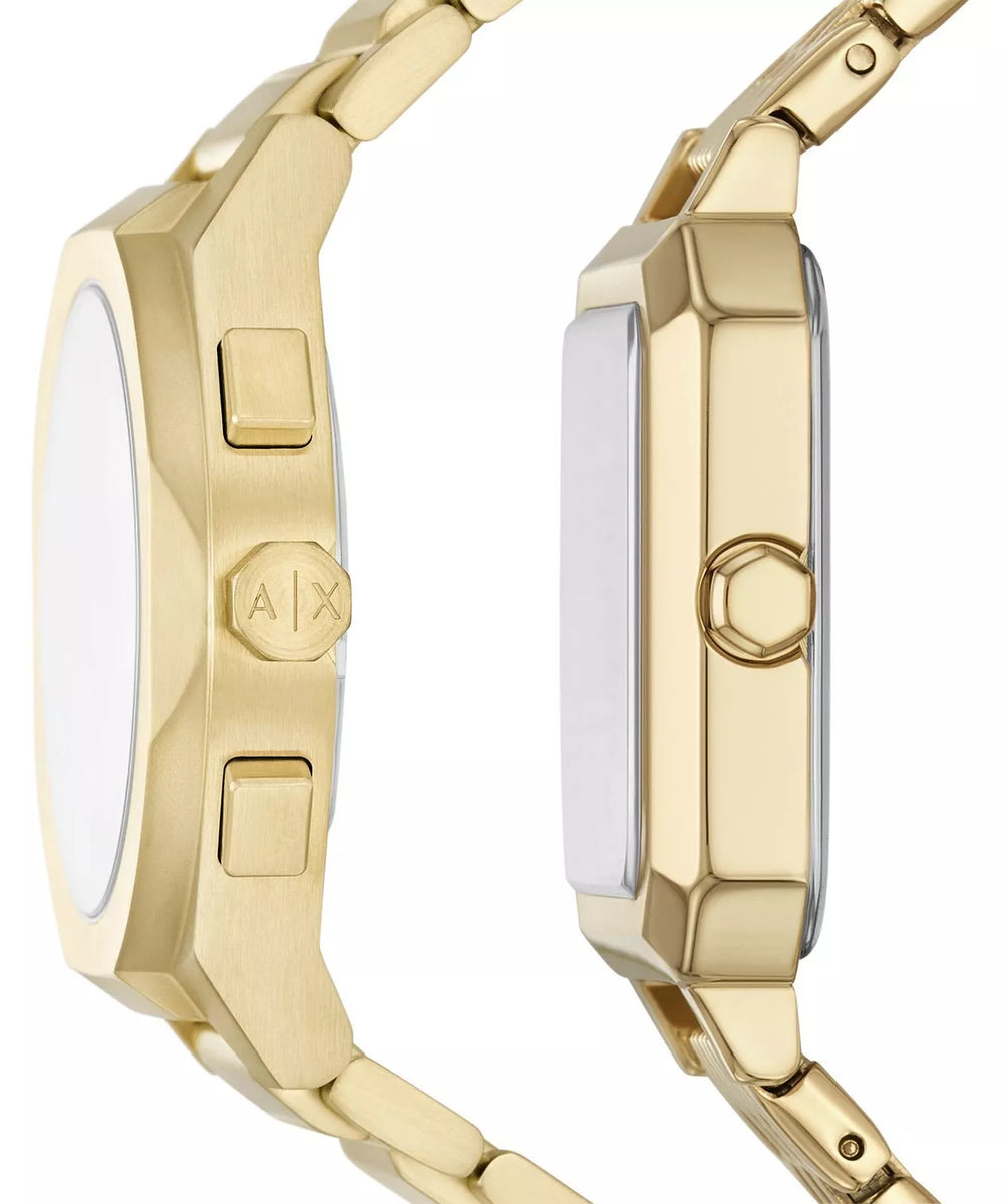 Armani Exchange Sync Chronograph AX7171SET is a men's quartz watch sold as a set with a second watch in gold tone. The model has an envelope, bracelet and dial in solid gold tones and a chronograph function. The watch features mineral glass and a water resistance of 50 meters, which protects the watch from splashes.