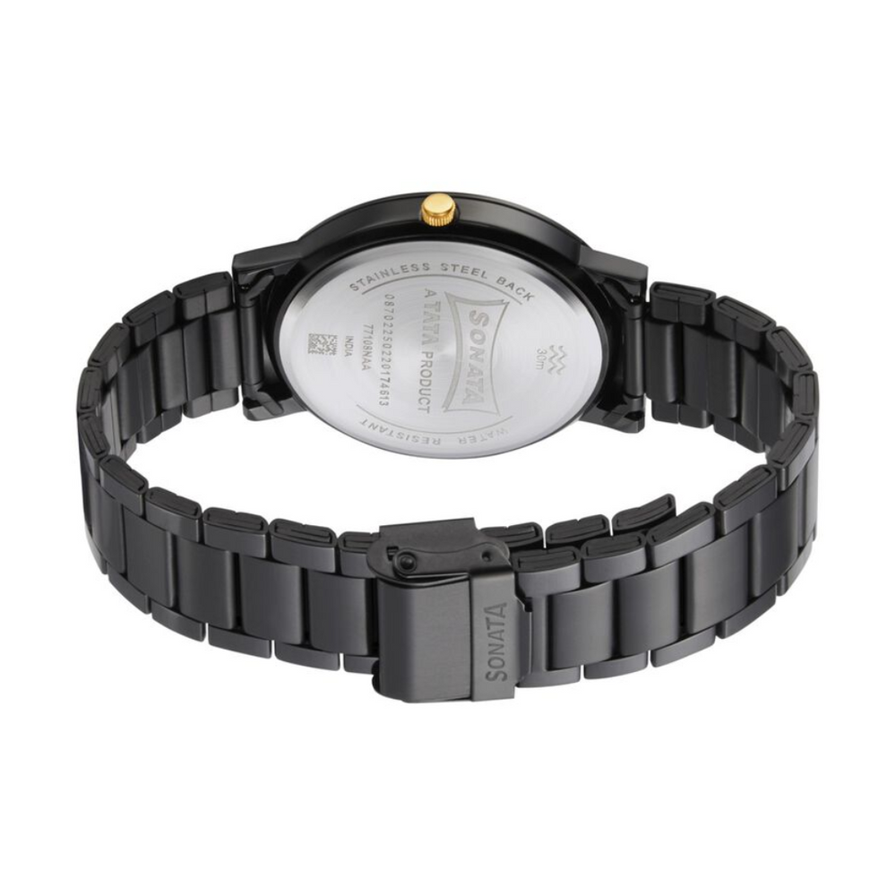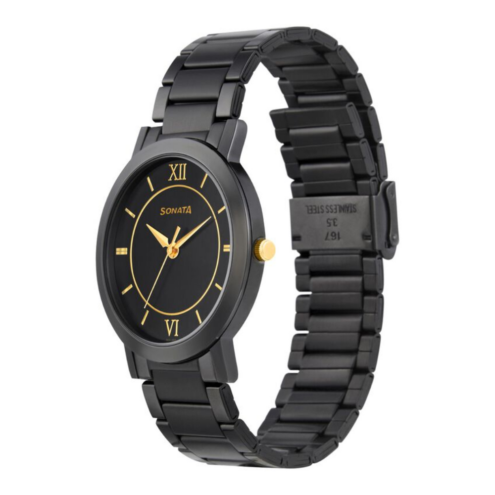 Beyond Gold Black Dial Metal Strap Watch 77108KM01