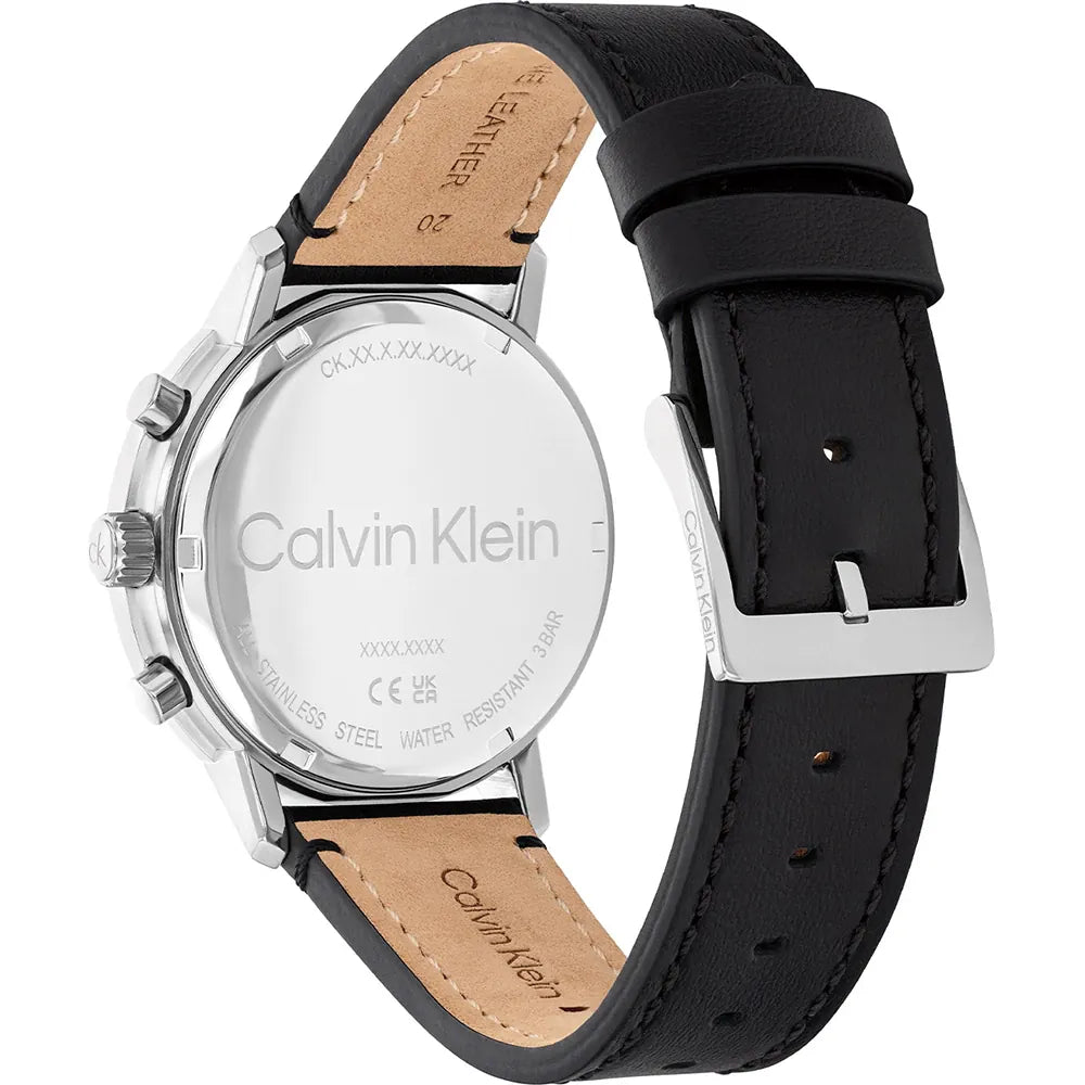 This Calvin Klein watch has a case made of stainless steel with a diameter of 42 mm and is fitted with a leather band. Inside the case lies a Ronda movement and the watch features a Mineral crystal.