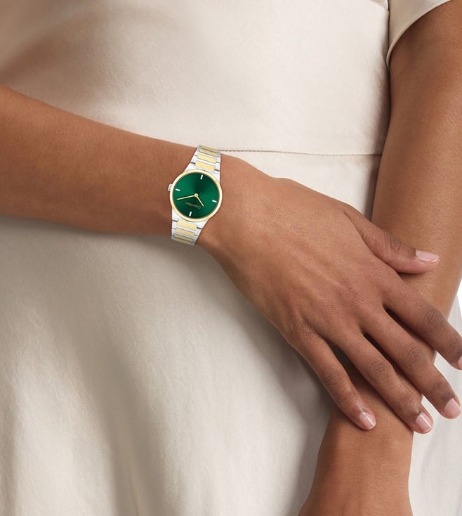Discover timeless craftsmanship with this CK Linear Elegance collection by Calvin Klein. Featuring a sleek dial shape and protected by durable materials, it ensures lasting clarity and strength. Powered by a precise quartz basic slim movement, this timepiece delivers reliable performance with effortless charm.