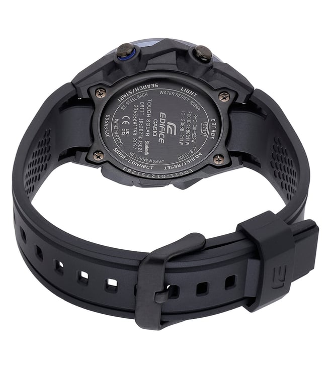 Feel the pure rush of a formula race car tearing up the track, with the EDIFICE WINDFLOW ECB-2200P, a digital-analog combination chronograph inspired by the racetrack. The side view, designed to evoke a sense of the wind flowing through a fender-pontooned formula race car, and the sharp, dimensional mechanical face present a unique look of sheer speed. The carbon fiber reinforced resin case lends strength, but keeps the watch lightweight for a very wearable design. The four openings on the band evoke the look of sports cars’ air vents and serve to enhance breathability when wearing the watch. It’s a snap to sync with your smartphone via Bluetooth®. Tap into the app to access functions that are so important for racing teams — get automatically adjusted to-the-second precision timekeeping, effortlessly manage world time, transfer stopwatch data measured to the millisecond for up to 200 lap times to your smartphone, and use Super Illuminator to light up the analog face. Tough Solar can charge the watch from sunlight or even fluorescent lamp light, storing enough power for up to 7 months of normal use. The scratch-resistant sapphire crystal delivers durability that can withstand the inevitable bangs and scrapes car mechanics experience.