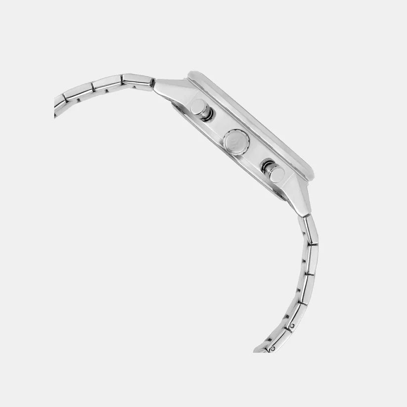panel. Details like the convex domed watch glass, stainless-steel case with narrow bezel, and push buttons