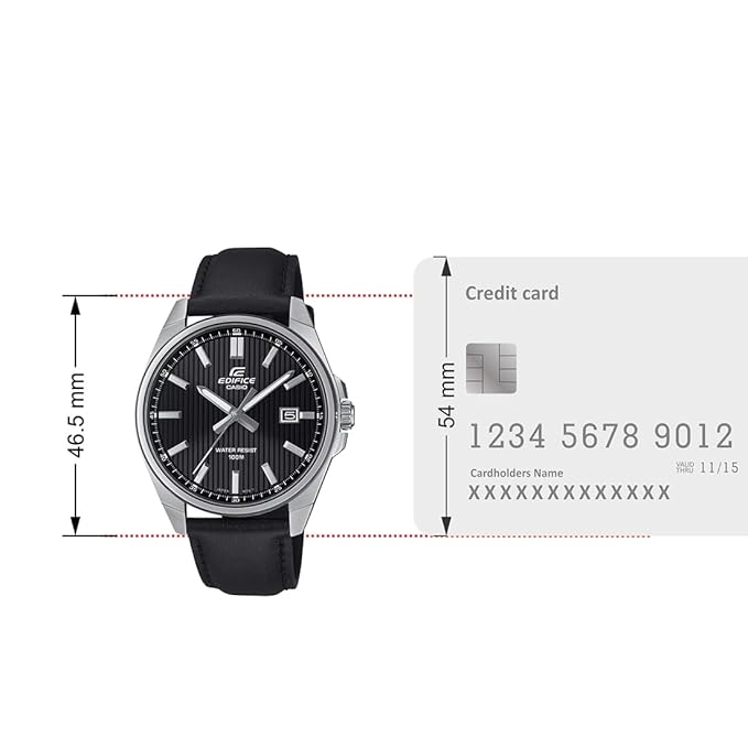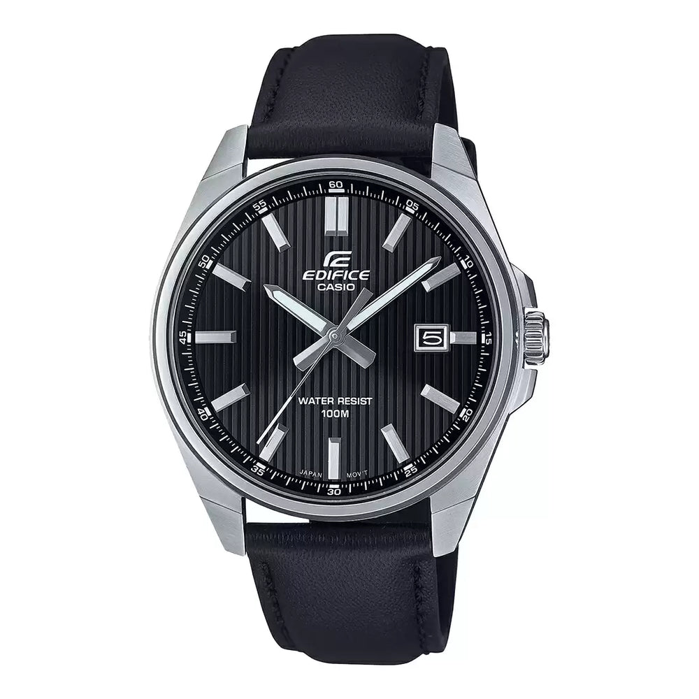 Slip on a contemporary classic — the simple sophistication of an analog design focused on the hour, minute, and seconds hands. Solid, sharp index marks and a highly durable band of Tough Leather Leather add to the sporty, yet classic look. And, as with every EDIFICE, this timepiece delivers 100-meter water resistance.