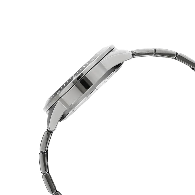 case and band are ion plated in black and paired with a gray dial for a sharp, fearless styling.