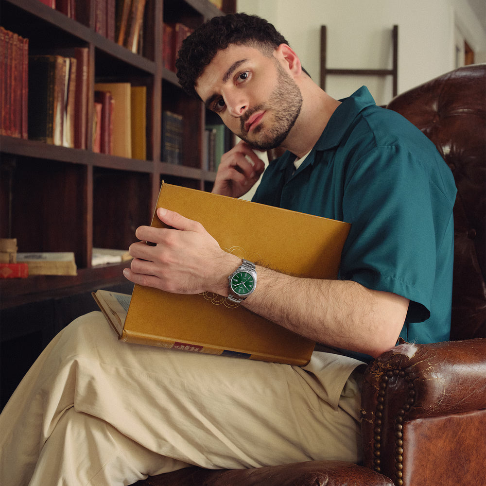 • 50-meter water resistance • Date display at 3 o'clock • A simple, easy-to-use design • Stainless steel band