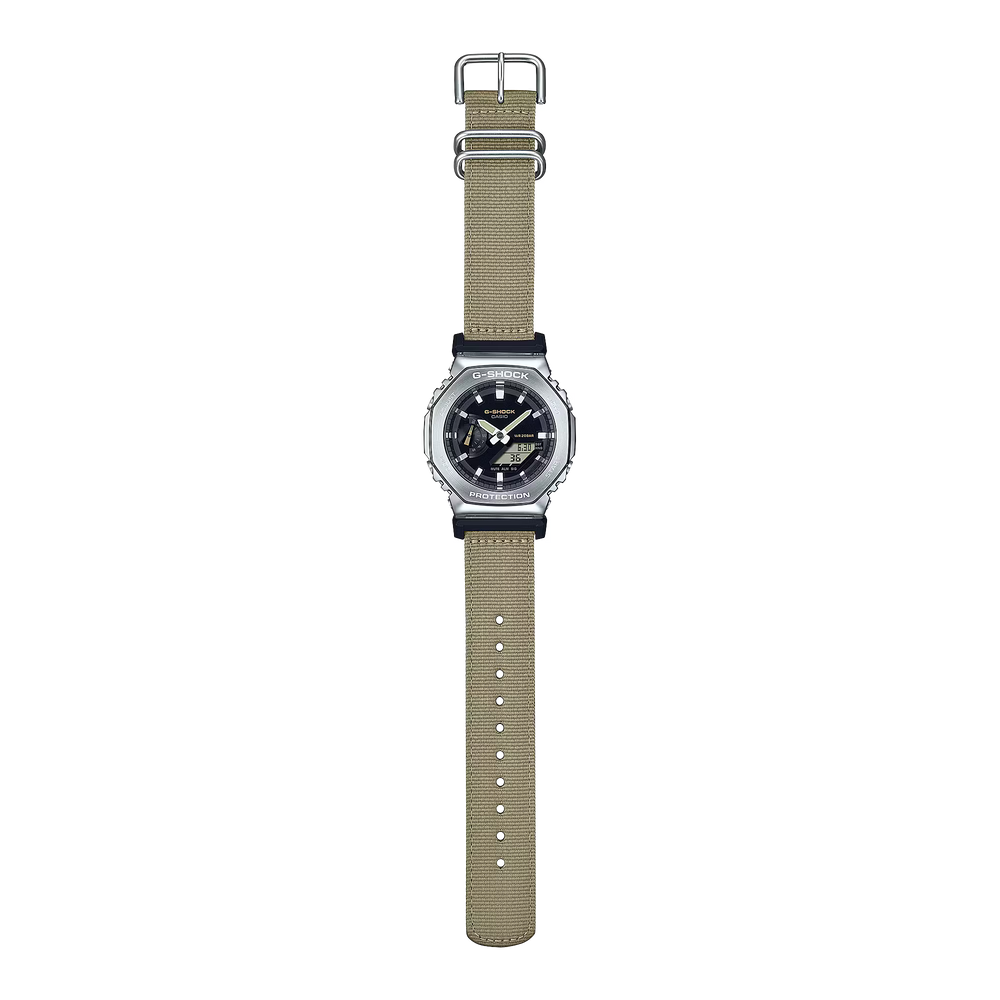 Add a utilitarian statement to your style with a G-SHOCK from the Utility Metal collection. These innovative watches take the iconic octagonal form and metal-clad design of the GM-2100 line and pair it with a casual fabric band in an utilitarian color that goes with any outfit. The striking contrast of metal and fabric results in an rugged style that is all about toughness and casual sophistication.