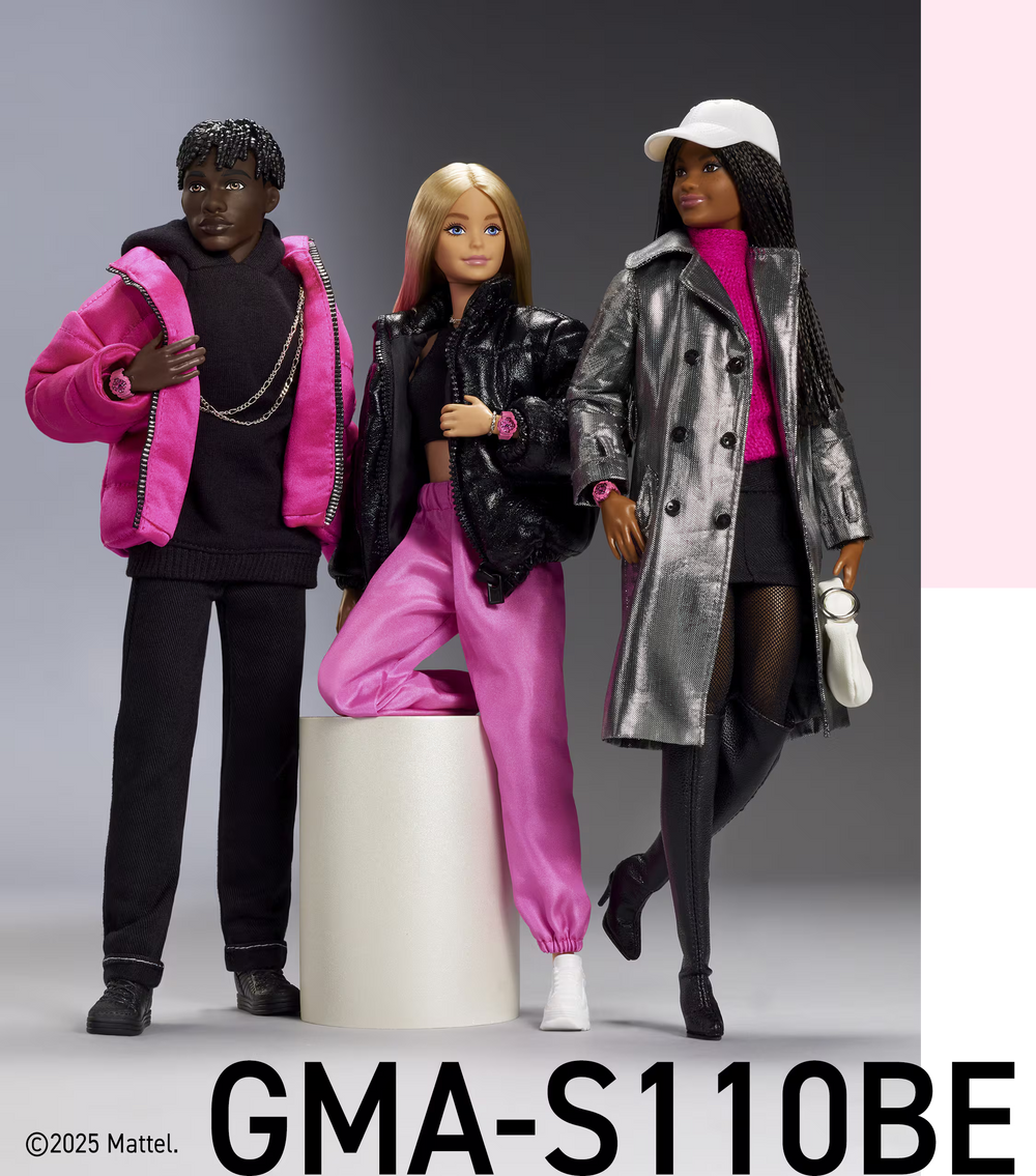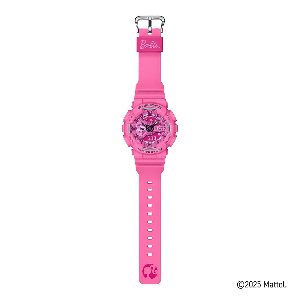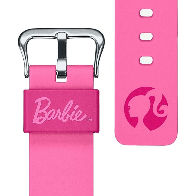 throughout with the Barbie™ logo and depictions of her Silohead. The original design is echoed in the watch’s