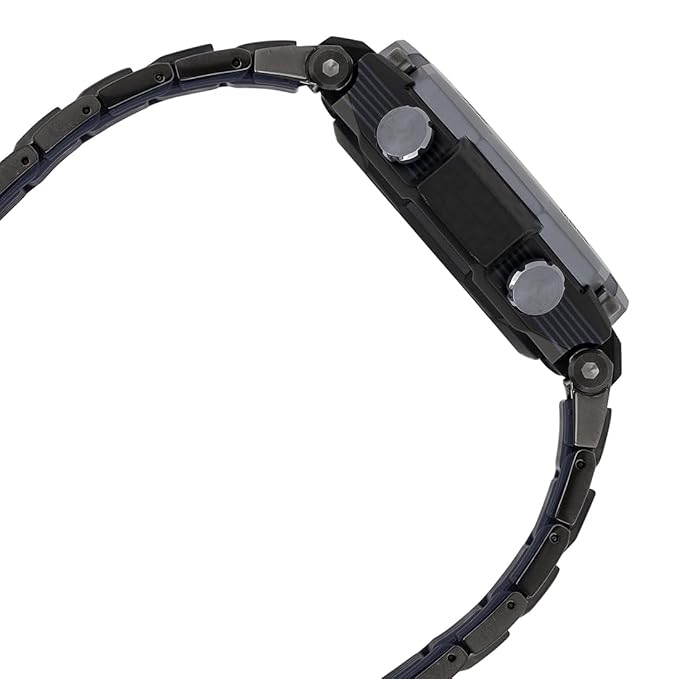 The stainless-steel top bezel and buttons are finished in blue-gray ion-plating set