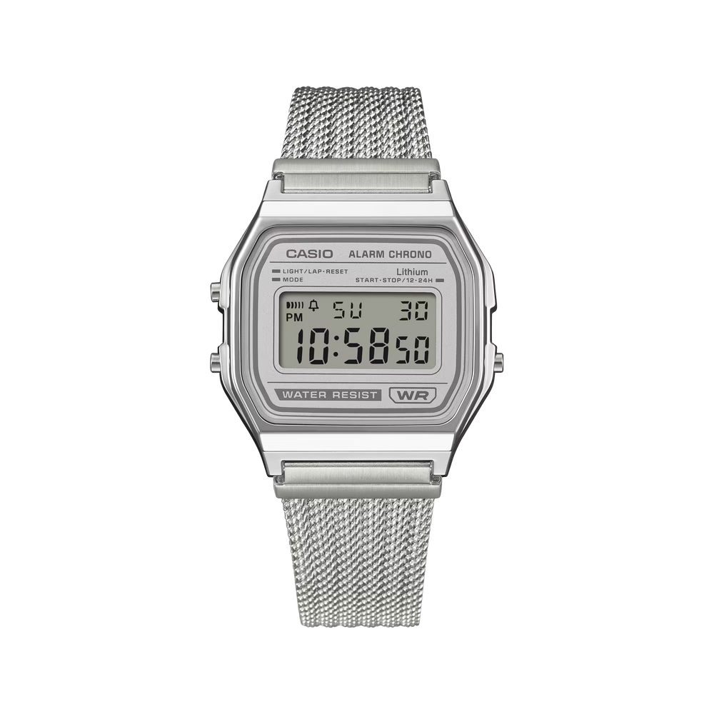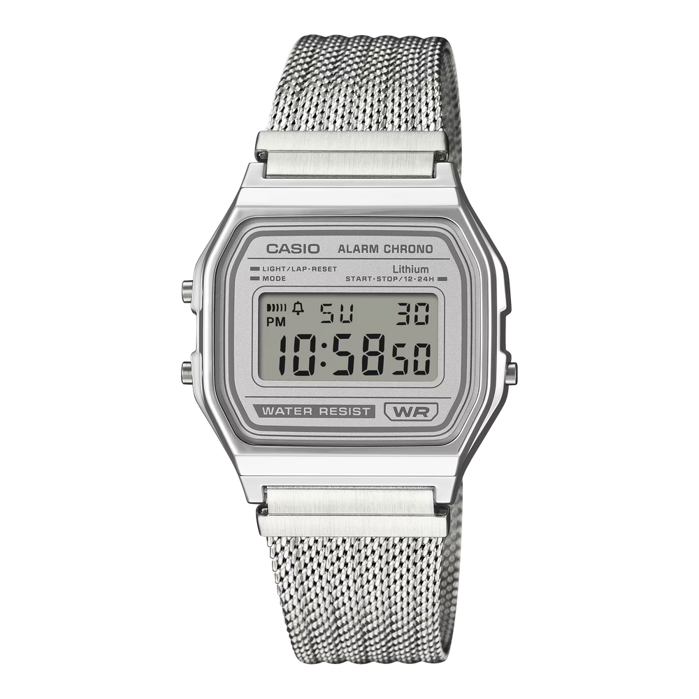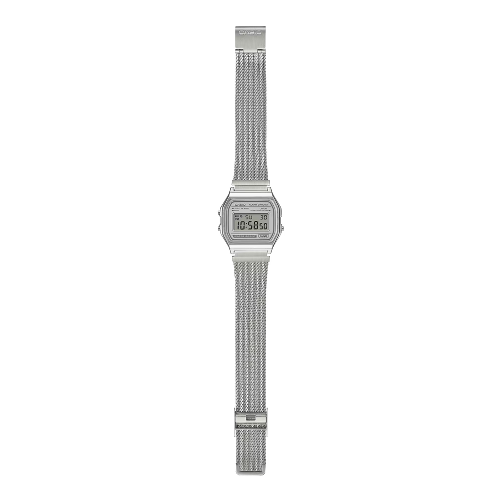 An updated take on a favorite classic — the ever-popular, easy-to-use A158 goes stylishly elegant with a fine-woven mesh band. Treated with a specialized pressing process that adds depth and dimension, the mesh band delivers a refined, vintage look and a totally comfortable fit for your wrist. Choose a dial in dark green or light gray. The silver-colored case and contrasting dial present an understated color scheme that adds a simple yet original touch to your style. These classic designs highlight the beauty of metal mesh for a refined and elegant presence all their own.