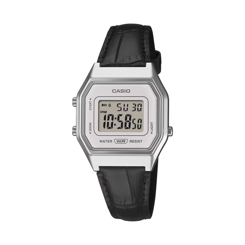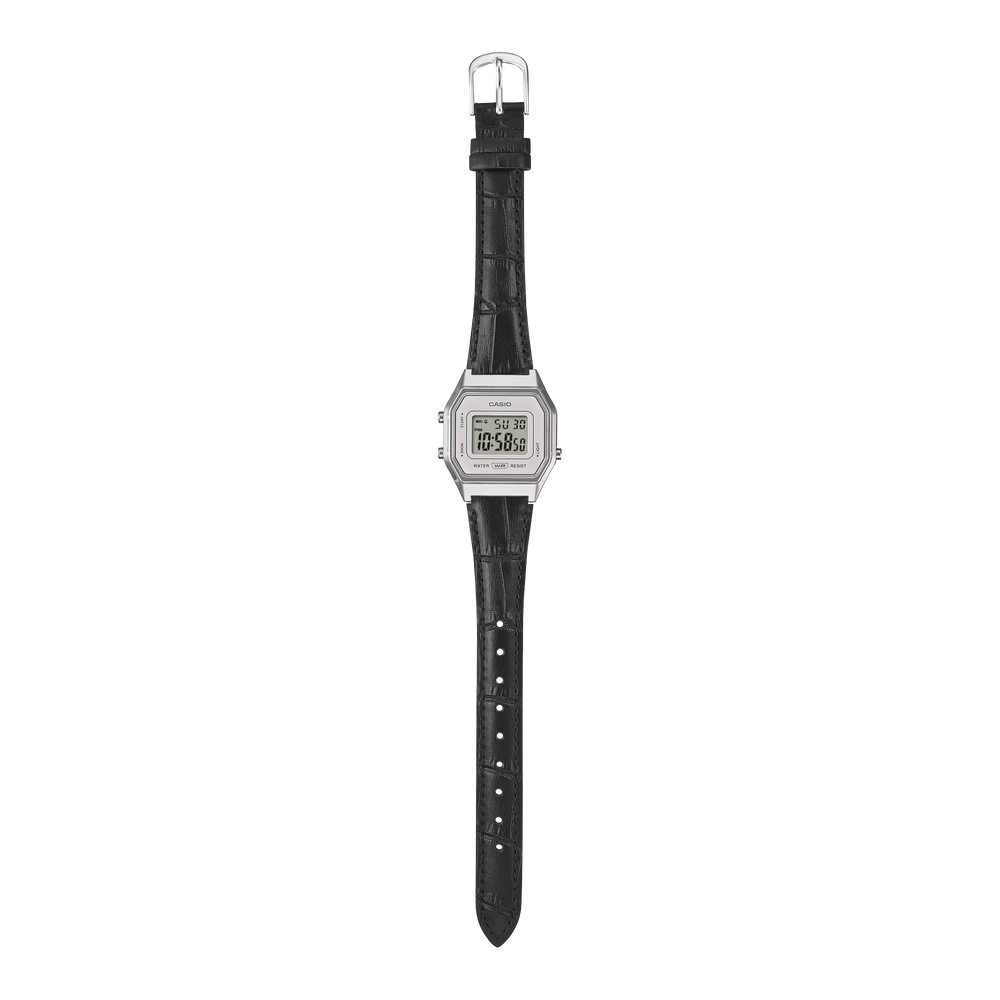 Make a sophisticated statement — the digital LA680WEL with a classic embossed leather band. The distinctively streamlined face of the digital LA680 is all about vintage luxury. Finished in soft, gentle hues, the color of the watch face pairs perfectly with a silver-colored case to project sophisticated elegance.