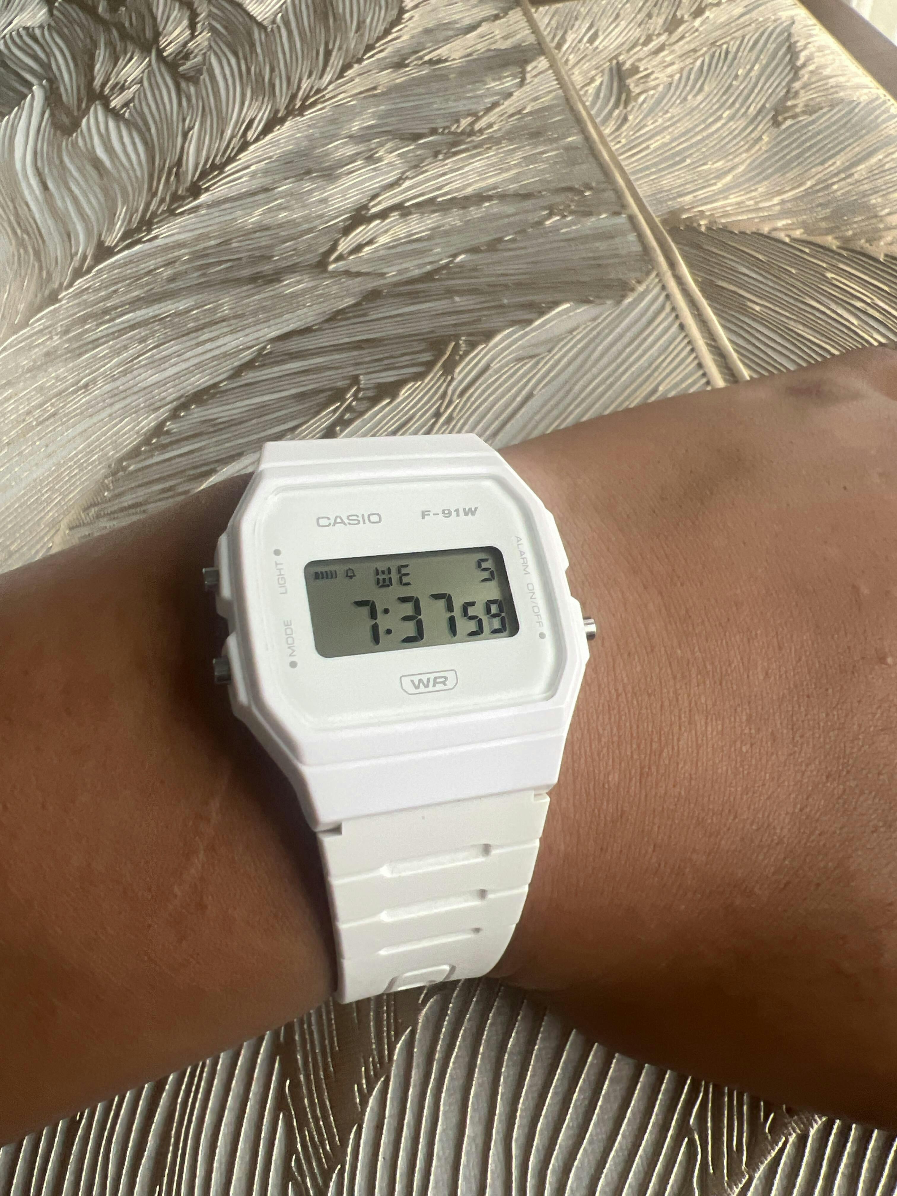 A favorite for decades — the slim, lightweight F91w with digital LCD now with a minimalist face, fewer mode indicators, and more environmentally responsible materials. The band is made with bio-based resin, a material expected to help reduce environmental impact. Complete with date/day display, alarm, stopwatch and other handy functions, these watches are always at the ready.