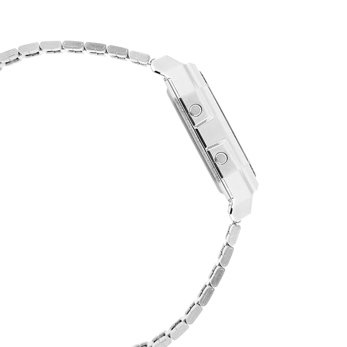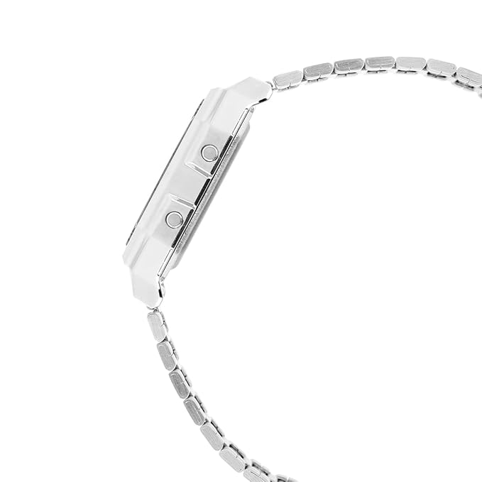 A digital watch featuring an analog-style clock display all wrapped up in the gadgety look you love. A retro-futuristic face is combined with stylish metallic colors and effective accent colors, showcasing a passion for gadgets. Boldly eclectic and practical, too. Packed with handy functions like water resistance for daily use, LED backlight, stopwatch, alarm, and more.