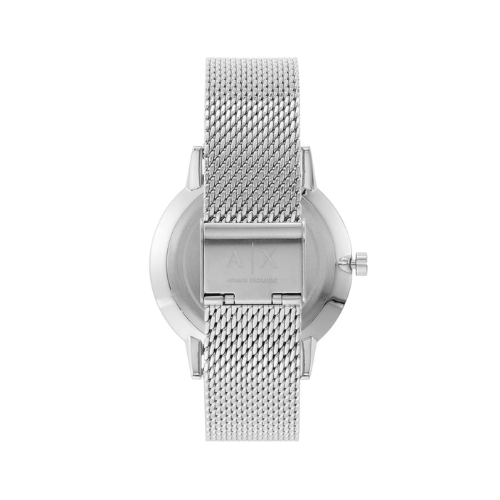 This sophisticated multi-functional watch for men from Armani Exchange is an ultimate expression. It boasts of an elegant and simple black sunray dial with bevelled indices and a silver mesh bracelet which adds texture and modern style to this multi-functional watch. It is water-resistant and suited to go with any casual wear.