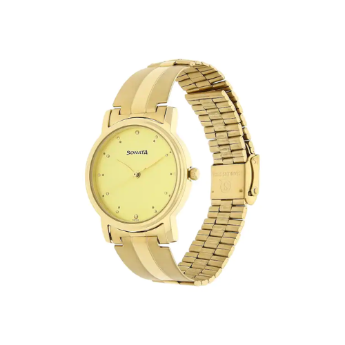 Sonata Champagne Dial Golden Stainless Steel Strap Watch NT1013YM24