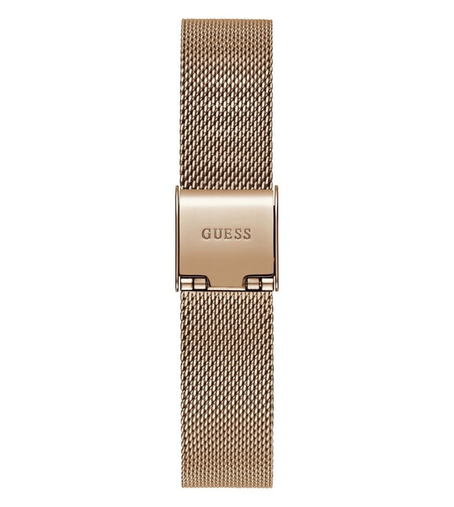 A must-have timepiece for all the watch aficionados, thiswomen's analog watch from the collection by GUESS will be a perfect pick. Therose rose gold round dial is protected by a mineral glass. It features and a crown for time adjustment. The stainless steel strap comes in a rose gold hue that further elevates the look of the timekeeper. Besides, it is completed with a hook buckle clasp to ensure a secure fit on the wrist.