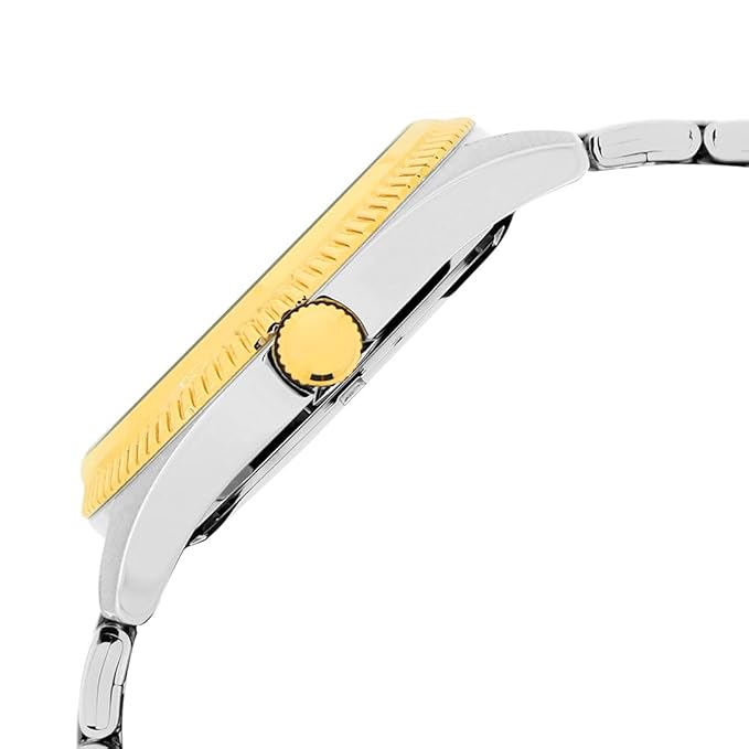 A must-have timepiece for all the watch aficionados, this men's analog watch watch from the heritage by ALBA will be a perfect pick. The gold round dial is protected by a mineral glass. The stainless steel strap comes in a two tone hue that further elevates the look of the timekeeper. Besides, it is completed with a fold-over clasp with double push button safety clasp to ensure a secure fit on the wrist.