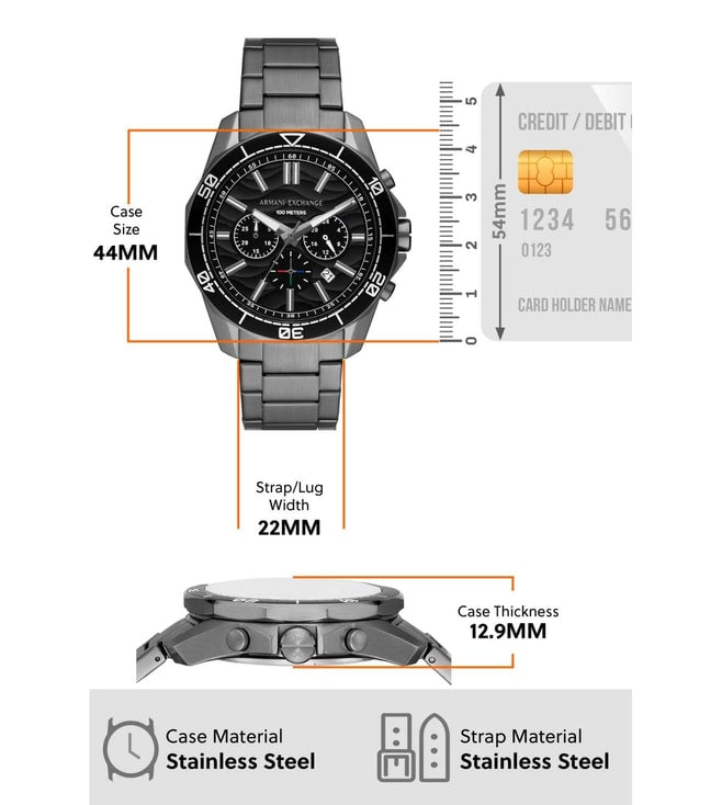 Unleash the power of time by wearing this wristwatch from Armani Exchange. The watch dial is protected with mineral glass and is water resistant up to 100 m. The timepiece works on a quartz movement. It is a must-have accessory for trendy individuals.
