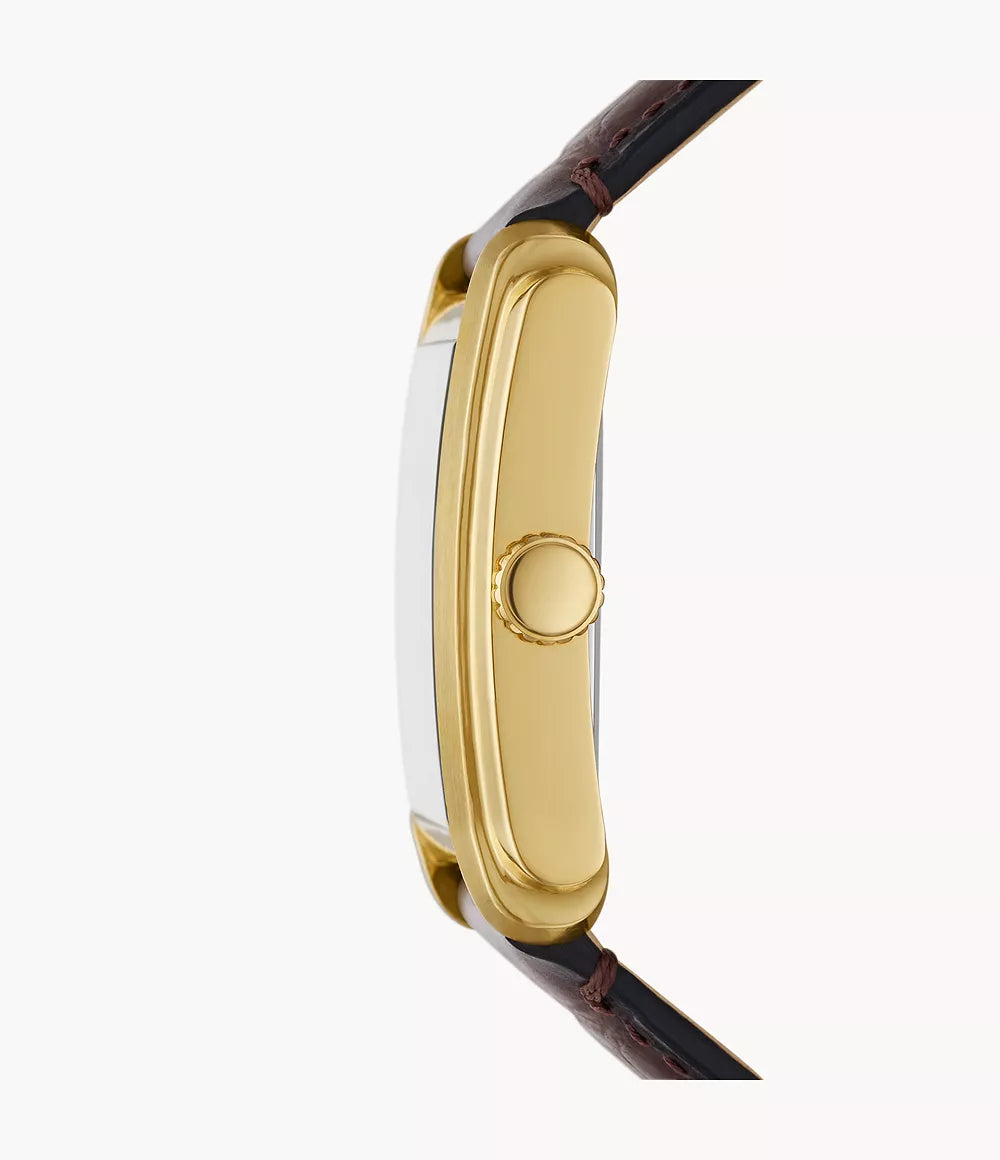 An instant classic, Carraway is thoughtfully designed down to every last detail. With a two-layered dial, curved-for-your-wrist case and a leather strap with soft nubuck lining, it's as timeless as it is comfortable. If you are a watch aficionado you will surely love this men's analog watch from FOSSIL. The silver rectangular dial is protected by a mineral glass. The genuine leather strap comes in a brown hue that further elevates the look of the timekeeper.