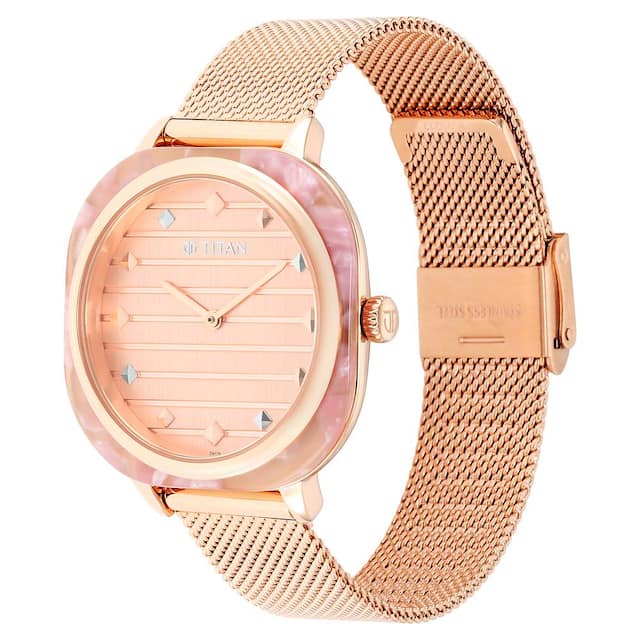 Glitz Rose Gold Dial Stainless Steel Strap Watch for Men