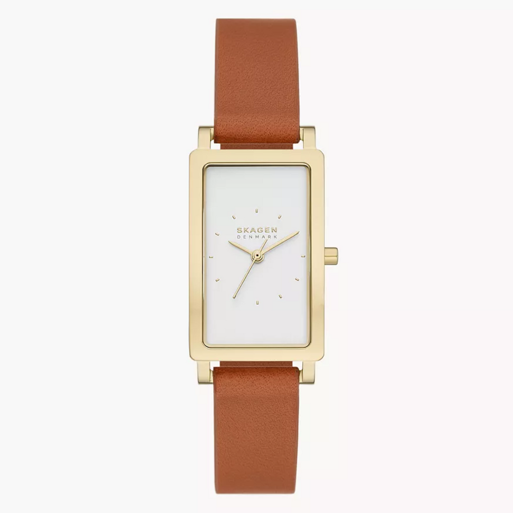 Hagen Three-Hand Brown Leather Tank Watch SKW3097