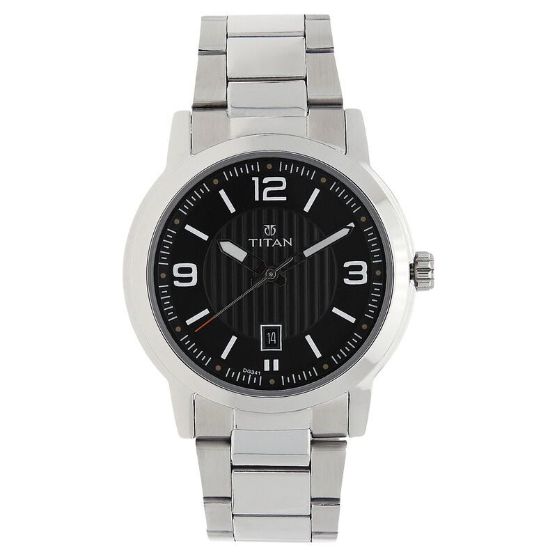 Titan Quartz Analog Analog with Date Black Dial Stainless Steel Strap Watch for Men NR1730SM02