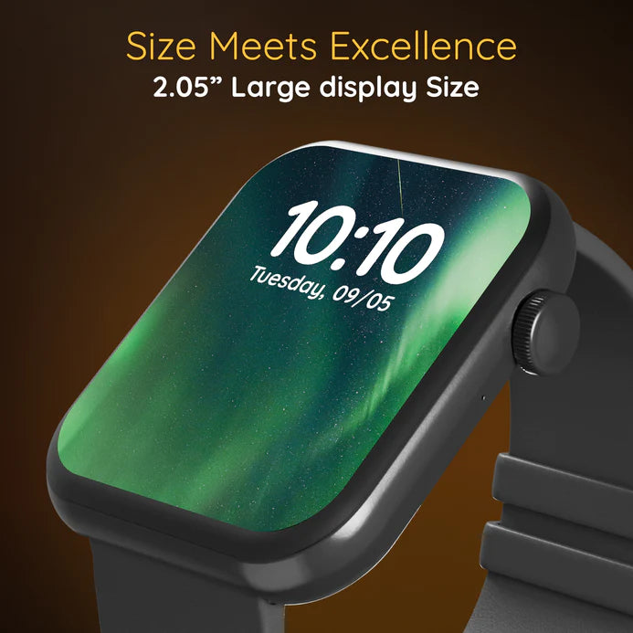2.05 Infinite Display, BT Calling, SPO2, Heart Rate Monitoring, Zen Mode, AI Voice Assistant, Smart Calculator, Multi Sports Modes, Step Pedometer, Sleep Monitor, Alarm & Notication Smarwatch