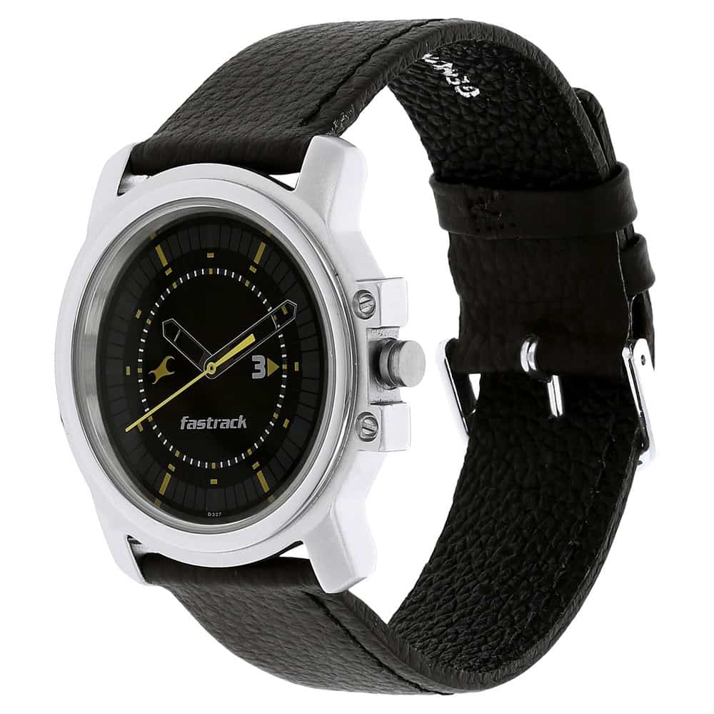 BLACK DIAL BROWN LEATHER STRAP WATCH - 3039SL02