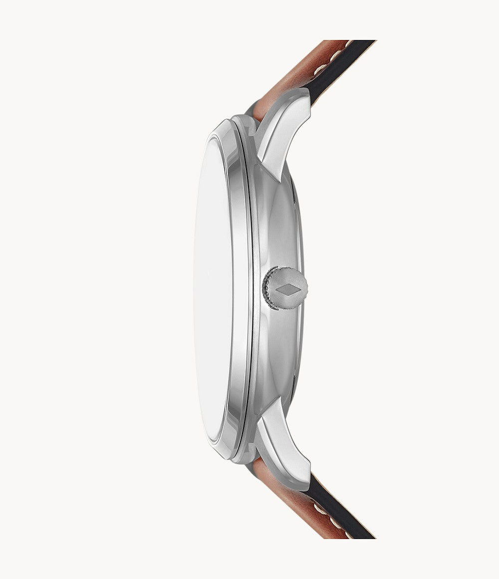 The genuine leather strap comes in a brown hue that further elevates the look of the watch. Featuring a blue round dial, this men's analog watch from the Neutra Minimalist collection by Fossil is sure to catch your attention. Enclosed in a 42 mm case, the dial looks absolutely stunning. It exudes multifunction functionality and a crown for time adjustment.