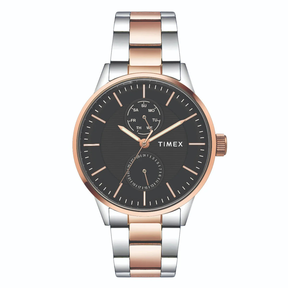 For the stylish men who love to stay atop their style game, this analog watch from Timex is crafted to suit their needs. Operated by a quartz movement, the navy round dial features three subdials and a crown for time adjustment. The genuine leather strap comes in a brown hue that further elevates the look of the watch. Furthermore, it is complemented with a buckle clasp that ensures a secure fit on the wrist.