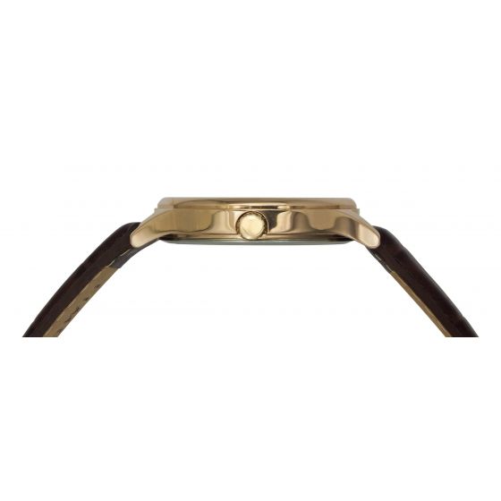 Upgrade your accessory collection with this men's analog watch from Timex. The white round dial features plain three hands, a date display and a crown for time adjustment. The genuine leather strap vaunts a brown hue that enhances the look of the watch. Besides, it is completed with a buckle clasp to ensure a secure fit on the wrist.