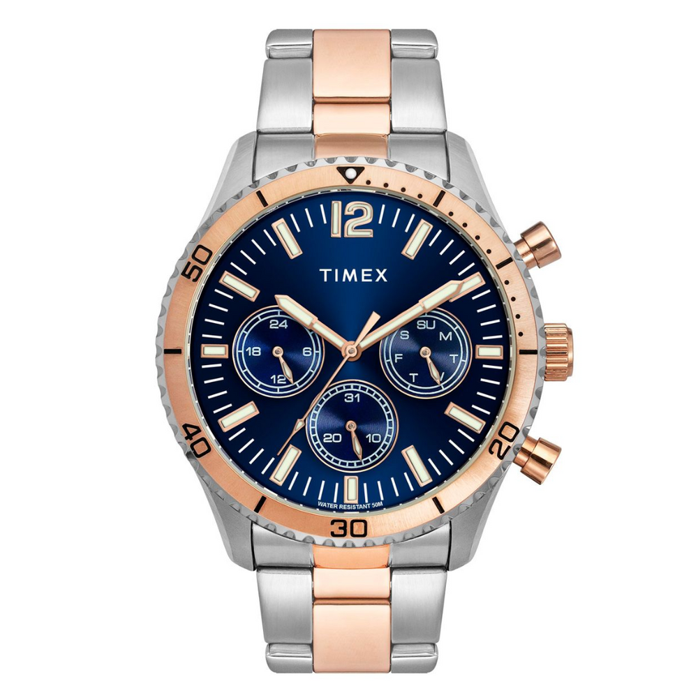 TIMEX E-CLASS PREMIUM-SPORT COLLECTION MULTIFUNCTION MEN ANALOG BLUE DIAL COLOURED QUARTZ WATCH, ROUND DIAL WITH 43 MM CASE WIDTH - TWEG22202