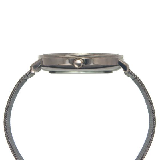 Full brown fashionable Swarovski crystal studded ladies mesh bracelet watch with a floral rose gold dial