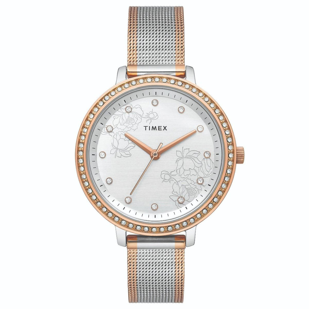 TIMEX FASHION WOMEN'S SILVER DIAL ROUND CASE 3 HANDS FUNCTION WATCH -TWEL14703
