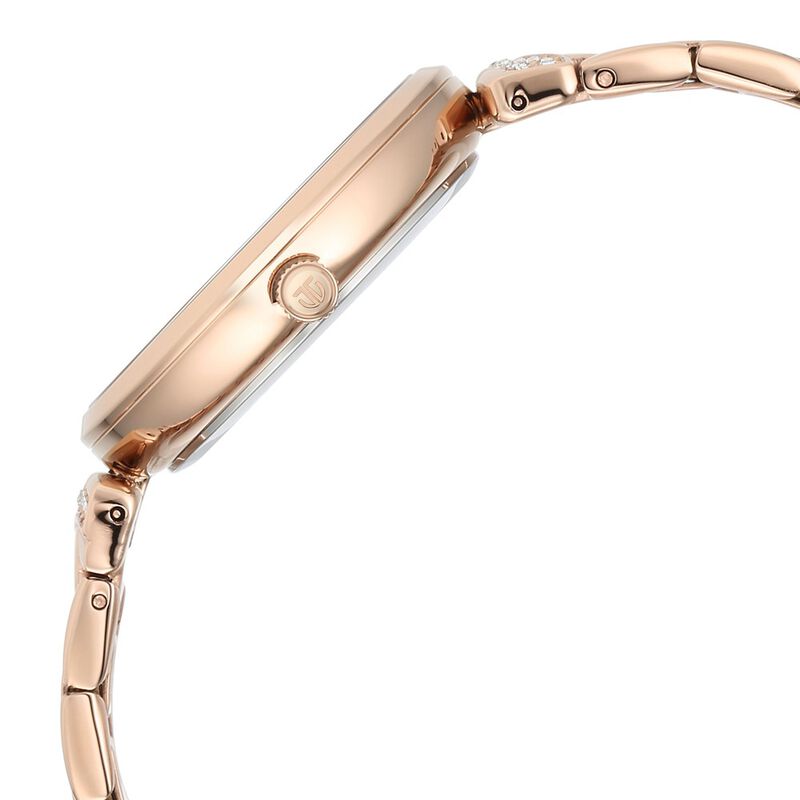 Amaze everyone around you by wearing this women's analog watch from the Purple Style Up collection by Titan. Encased in a 34 mm case, the white round dial features plain 3-hand functionality and quartz movement on the watch. The stainless steel bracelet comes in a rose gold hue that further elevates the look of the watch. Besides, it is water resistant up to 50 m and is completed with a push button clasp to ensure a secure fit on the wrist.