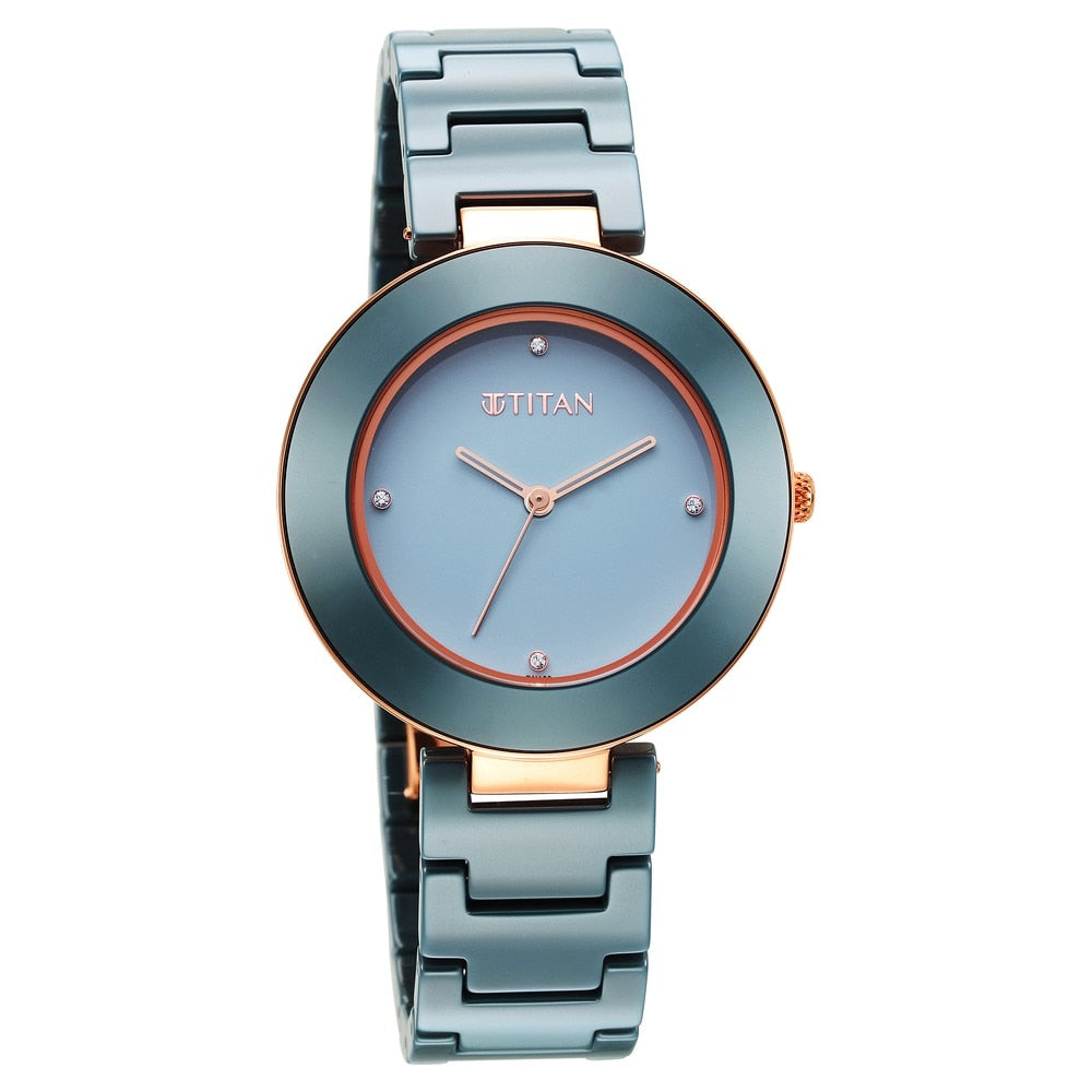 Purple Ceramics Blue Dial Ceramic Strap Watch for Women 95189KC05
