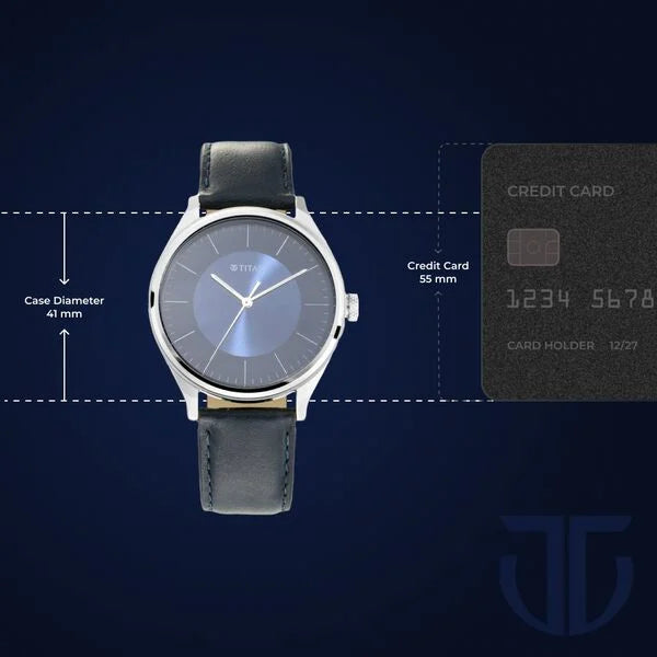 Let people appreciate you for your sense of style by wearing this men's analog watch from the Neo Economy collection by Titan. Its genuine leather strap comes in a navy hue that elevates the look of the watch. Enclosed in a 48 mm case, the navy round dial is secured by a mineral glass. It displays plain three hands and a crown for time adjustment. Besides, it is finished with a buckle clasp that provides a secure fit on the wrist.