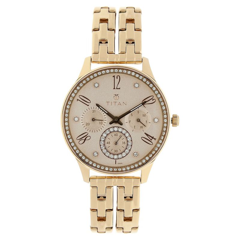 Titan Purple Rose Gold Dial Quartz Multifunction Stainless Steel Strap Watch for Women NR95040WM01