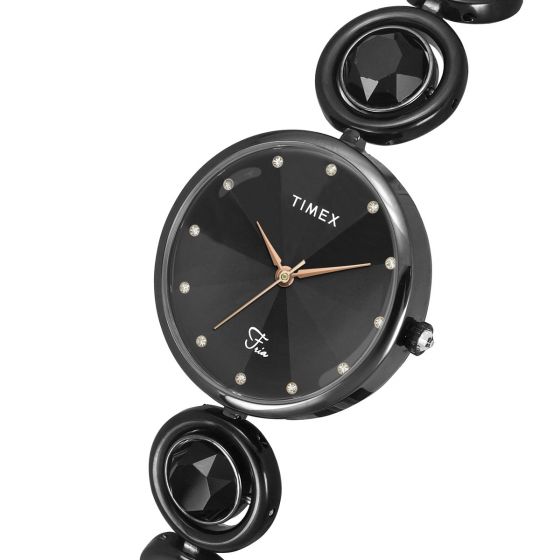 TIMEX FRIA WOMEN'S BLACK DIAL ROUND CASE 3 HANDS FUNCTION WATCH -TWEL16401