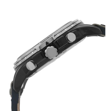 Fashioned with a genuine leather strap, this men's analogue watch from Cerruti 1881 will give you the statement look you have been coveting for. Encased in a 47 mm case, the round dial is protected by a mineral glass. It features chronograph and a crown for time adjustment