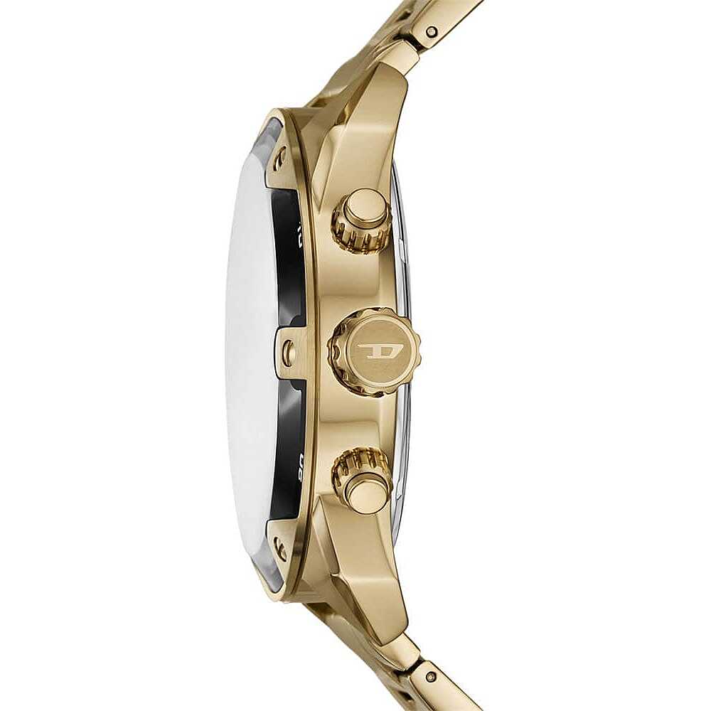 Diesel men's watch from the Spiked collection. Watch with a stainless steel case with a mixed gold color finish, round shape, measuring 49 mm and 13 mm thick. The dial is multicolored, the distance between the lugs is 24 mm. The strap is stainless steel with a mixed gold color finish, in the shape of a bracelet and a deployant clasp. Water resistance is 5 ATM, with quartz movement. The reference is DZ4685