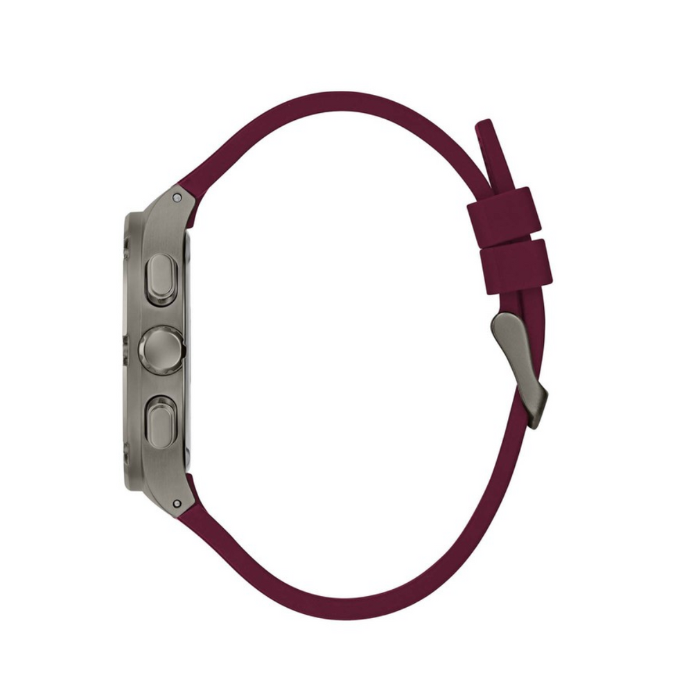 Give your wrist a stunning look with this watch from Guess. Housed in a 42 mm case, the dial is shielded with mineral glass and runs on a quartz movement. It is water resistant up to 50 m and is finished with a strap buckle to guarantee a snug fit on the wrist. It showcases a watch case, combining durability with a modern design. The dial adds a touch of sophistication and uniqueness, making it versatile enough for various occasions.