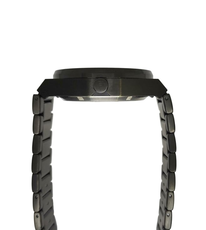 Designed to suit the preference of urban men this analog watch from EARNSHAW is sure to make a style statement. Secured by a sapphire glass, the black round dial. It has a crown for time adjustment. The stainless steel strap flaunts a black hue that accentuates the look of the watch. Moreover, it is fitted with a fold-over clasp with double push button safety clasp to ensure a secure fit on the wrist.
