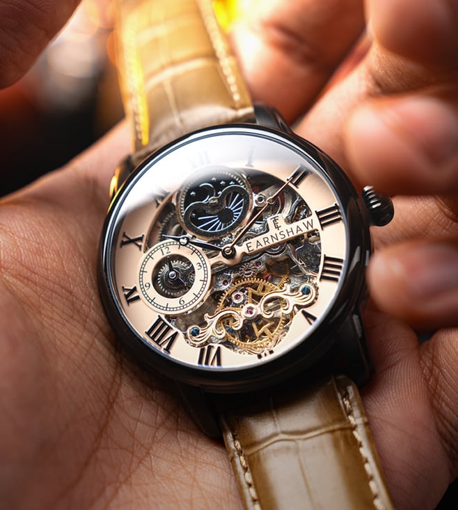 Introducing the EARNSHAW LONGITUDE Automatic Men's Watch, a sleek and sophisticated timepiece designed for the modern man on the go. With its 44mm case size, this watch makes a bold statement while offering precise timekeeping thanks to its automatic movement. The ES-8006-0G model exudes luxury and style, perfect for any occasion. Elevate your look and stay on schedule with this elegant watch that combines form and function seamlessly.